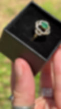 1940s 14k blue sapphire with elegant emerald cut diamond accents